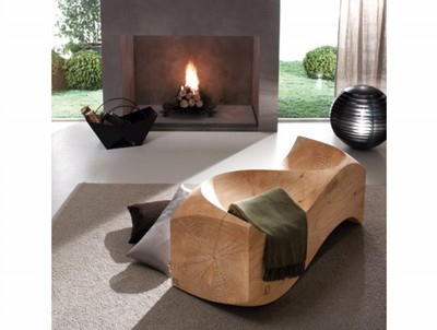 en mysig trämöbel. vid namn the Wooden Loveseat skapad av Jake Phipps från London. Vilket hantverk! man kan ha den både ute och inne. framför brasan om man har ngn kanske, som på bilden. själv skulle jag väl få sätta på skivan med bras filmen och titta på den genom projektorn för mysstämning. men men man kan inte få allt.