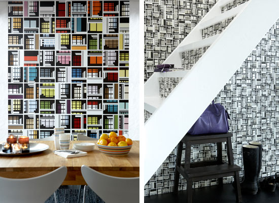 Tapetföretaget DecorMaison kom innan jul ut med information om deras nya kollektion Dimensions. Den nya kollektionens tapeter lurar ögot och bidrar till att skapa nya dimensioner i rummet och skall enligt pressrealesen ha "ett tredimensionellt formspråk som skall leda fantasin bortom tid och rum". Tapeterna kommer i finnas i butik i februari, så nästa vecka skall du kunna hitta dem i närmaste butik. Klicka in på DecorMaisons hemsida om du vill se hela kollektionen. Min favorit är mönstret nedan, speciellt det färgglada, en tapet som gör att man kan ta upp vilken annan färg man vill i rummet. Perfekt!