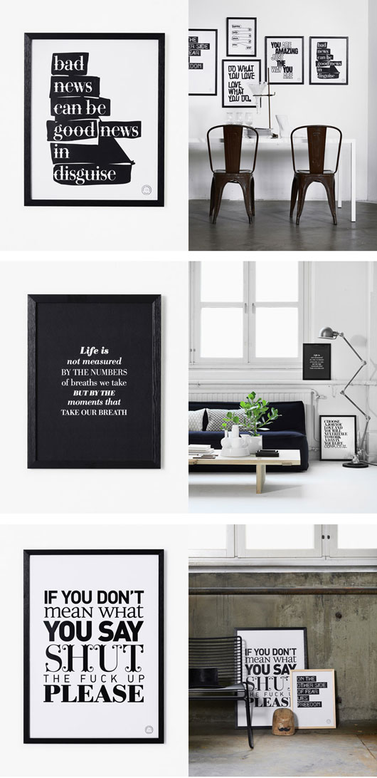 Idag lanserar Therese Sennerholt nya illustrationer i sin webshop. De är (som vanligt) väldigt snygga, tänkvärda och helt enkelt underbara. Hennes interiörfoton är också (som vanligt) snygga och fräscha. Priserna, utan ramar, ligger mellan 550kr till 950kr. Mina personliga favoriter av nyheterna ser ni nedan, älskar verkligen hennes texter, de har så få ord men säger så mycket. Nu ska jag bege mig till en måndagsfika med några vänner, på återseénde!