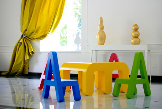 Kategorier Övrigt Bokstavstrenden 2.0: Möbler Inläggsförfattare Av hemtrender Inläggsdatum 4 november, 2010 Inga kommentarer till Bokstavstrenden 2.0: Möbler Den italienska designern Alessandro Di Prisco har verkligen tagit bokstavs- trenden ett steg längre. Han har designat barnmöbler i form av bokstäver. Stolar som A.n och bord/pallar som M. Han har även gjort något av bokstaven G, vill du se vad så spana in hans hemsida här. Nu var alla bokstavsinläggen publicerade, och om vi tittar oss om omkring så tror jag vi lätt ser många, många fler exempel på detta! Foto: Pressfoton från Alessandro Di Prisco ← Bokstavstrenden 2.0: Bokhylla → Söndagsinspiration Lämna ett svar Avbryt svarDin e-postadress kommer inte publiceras. Obligatoriska fält är märkta *Kommentar * Namn * E-postadress * Webbplats nio × 3 =