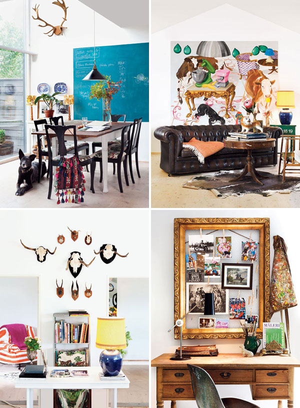 Monday, Morning! Yes, ny vecka och jag är superladdad! Märkligt egentligen, har mer och mer börjat tycka om måndagarna, man har en helt ny vecka framför sig och det är bara att fylla den med en massa kul! På Hemtrender börjar veckan med lite tokig inspiration i form av interiörfoton hos konstnären Tove Mauritzson, en avslappnad tokig mix av prylar. Min favorit är ramen ovanför skrivbordet med ett nät i och som verkar användas som en levande tavla som man kan ändra lite efter humör, är inte detta en fantastisk idé?
