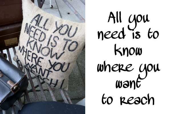 Idag på lunchen tog jag en snabbvisit till inredningsbutiken Hjärterum i Borås och mina ögon fastnade för denna kudde. Är inte citatet klockrent, vem vet om man är på rätt väg om man inte vet vart man ska? Citattavla på den? Någon?