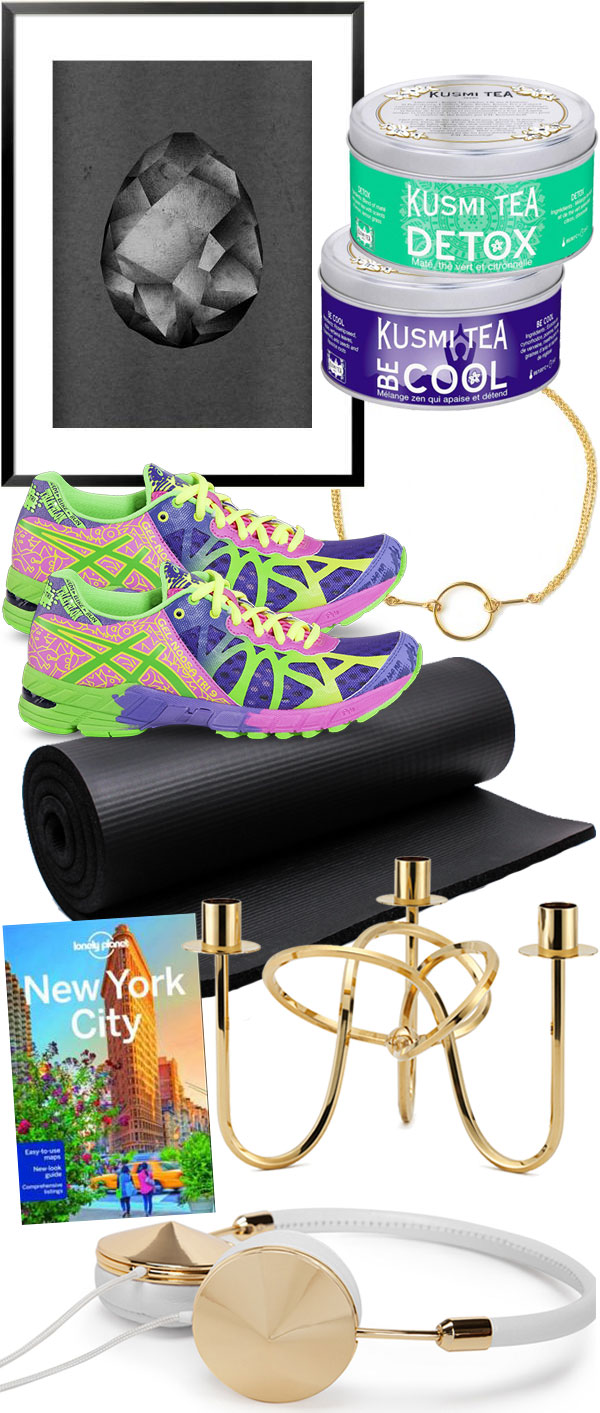 Printet ”Monika” av Martin Nicolausson från Arte Limited hade gärna fått hänga ovanför min soffa. Te från Kusmi kan man inte ha för mycket av. Ljusstaken Vänskapsknuten i mässing från Svenskt Tenn har jag så länge suktat efter så den får stå med även på denna lista… Jag skulle behöva en Yoga-matta + nya löparpjucks. Armband med en tanke tycker jag om, denna Karmacirkel skulle jag gärna bära på. Lonely Planet New York City behövs till höstens resa. Och nya lurar skulle sitta fint.