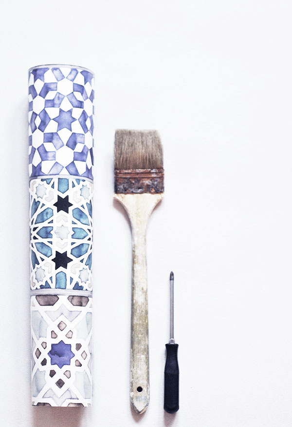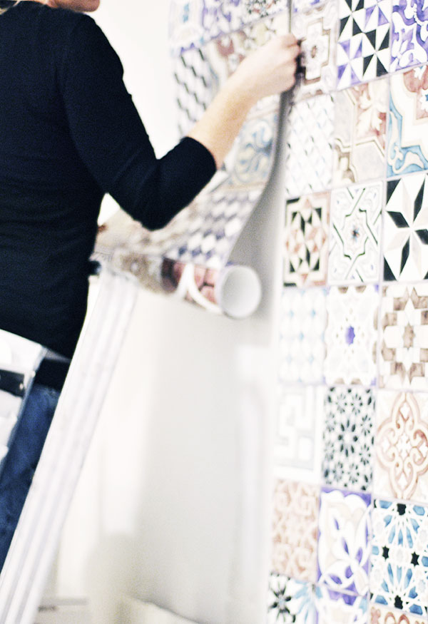 Så i helgen tapetserade jag över min blåa Phytagorassats i köket och nu har jag istället en fondvägg med ett vackert marrakechkakel. Fler bilder kommer senare men för nu är jag så j-kla stolt att jag gjorde tapetseringen helt själv. Med allt från att konka hem lim och stege på lån från jobbet, limma, skära, torka och fixa. Och att jag fick en ny vägg och ett rum med en helt annan stil på bara några timmar. Perfekt helgnöje för en inredningstok som mig!