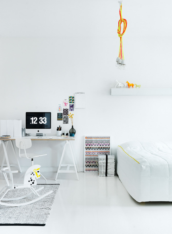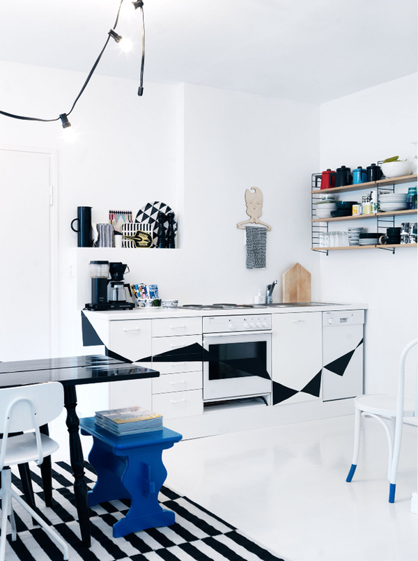 Att kika in hemma hos en stylist är alltid kul. Vi startar vecka 14 med att ta oss en titt hemma hos finska stylisten Susanna Vento, a.k.a. Varpunen. Den målade/påklistrade (?) svarta girlangen över underskåpen i köket var en kul idé liksom blå dipdye på den vita Thornet stolen och härligt med ett vågat färgval till lampsladdarna i sovrummet! Fler bilder hittar du här.