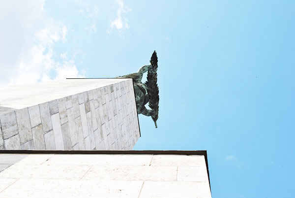 Där Frihetsstatyn står som håller ett palmblad och blickar ut över staden.