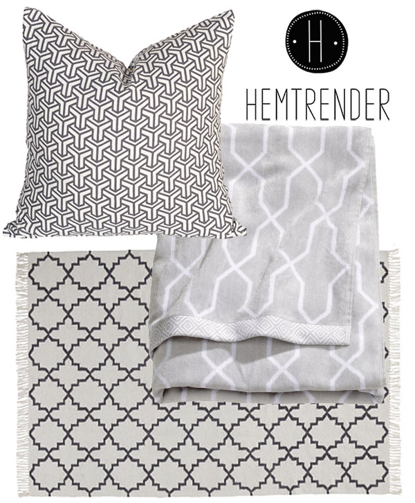 Kategorier Inredningstrender Hemtrend: Art Deco-mönster Inläggsförfattare Av hemtrender Inläggsdatum 28 januari, 2015 Inga kommentarer till Hemtrend: Art Deco-mönster En av vårens inredningstrender är Art Deco-mönster och om man tycker om det så finns det massor att välja av i butikerna nu. Här har jag plockat ut tre textilier med eleganta mönster inspirerade av Art Deco. Jag gillar´t. Gör du? Kudde från Nina Kullberg ca750kr // Duschhandduk H&M Home 149kr // Matta Ellos 2499kr Etiketter inredningstrender ← I min stringhylla just nu → Fredagsinspo: Sara N Bergmans ateljé 0 svar på ”Hemtrend: Art Deco-mönster” Åh den mattan har jag spanat på… Kan inte bestämma mig om jag vill ha denna eller den blå :)… Svårt val, I agree =) Så fina mönster. Ska nog kika närmare på en sådan till våran nya soffa . tackar för en underbar blogg. Lämna ett svar Avbryt svarDin e-postadress kommer inte publiceras. Obligatoriska fält är märkta *Kommentar * Namn * E-postadress * Webbplats × = två