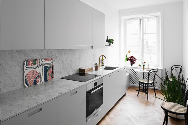Hos Sanna såg jag denna skönhet på Karlavägen 15 som ligger ute till försäljning hos Per Janssons Fastighetsmäkleri i Stockholm. Lägenheten är en 5.a så prislappen ligger på dryga 12 miljoner men lite kan man ju drömma, right? Vad jag gillar med den? Jo, först och främst skiva med carraramarmor, kran i mässing och nyslipat golv med fiskbensmönster i köket (jag förstår dock inte placeringen av stolarna på andra fotot..).