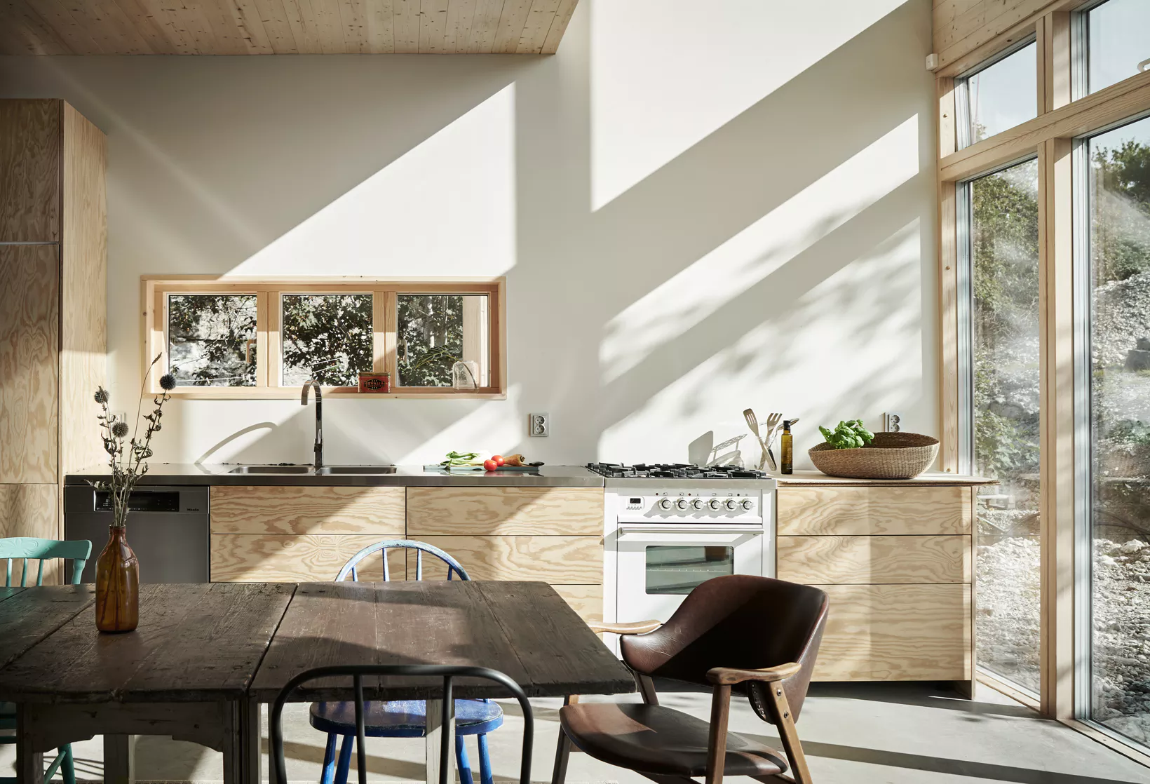 Vad sägs om lite fredagsinspiration från ett arkitektritat hus på Gotland? Denna magiska ö. Huset är ritat för en liten familj och består av tre delar sammanbundna av ett orangeri. Jag inspireras både av insidan och utsidan. En insida med mycket trärent, kika bland annat köket med trärena tak, väggar och köksskåp. Snyggt.