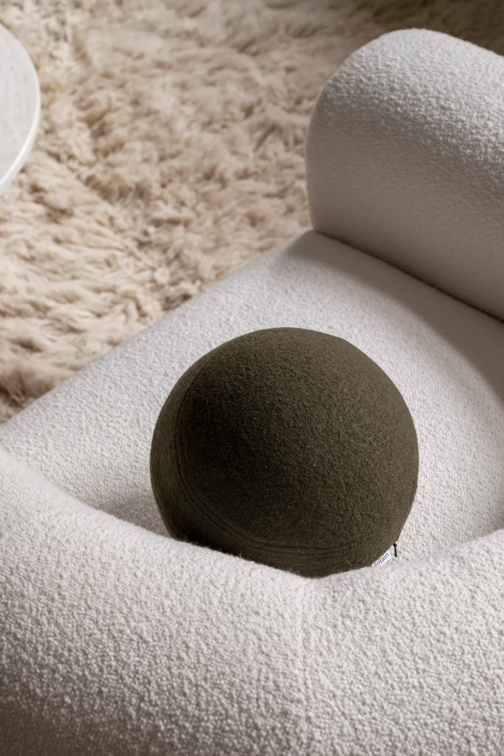 Kuddarna är handsydda i 100% merinoull – en skulptural detalj som är enkel att addera till alla hem.