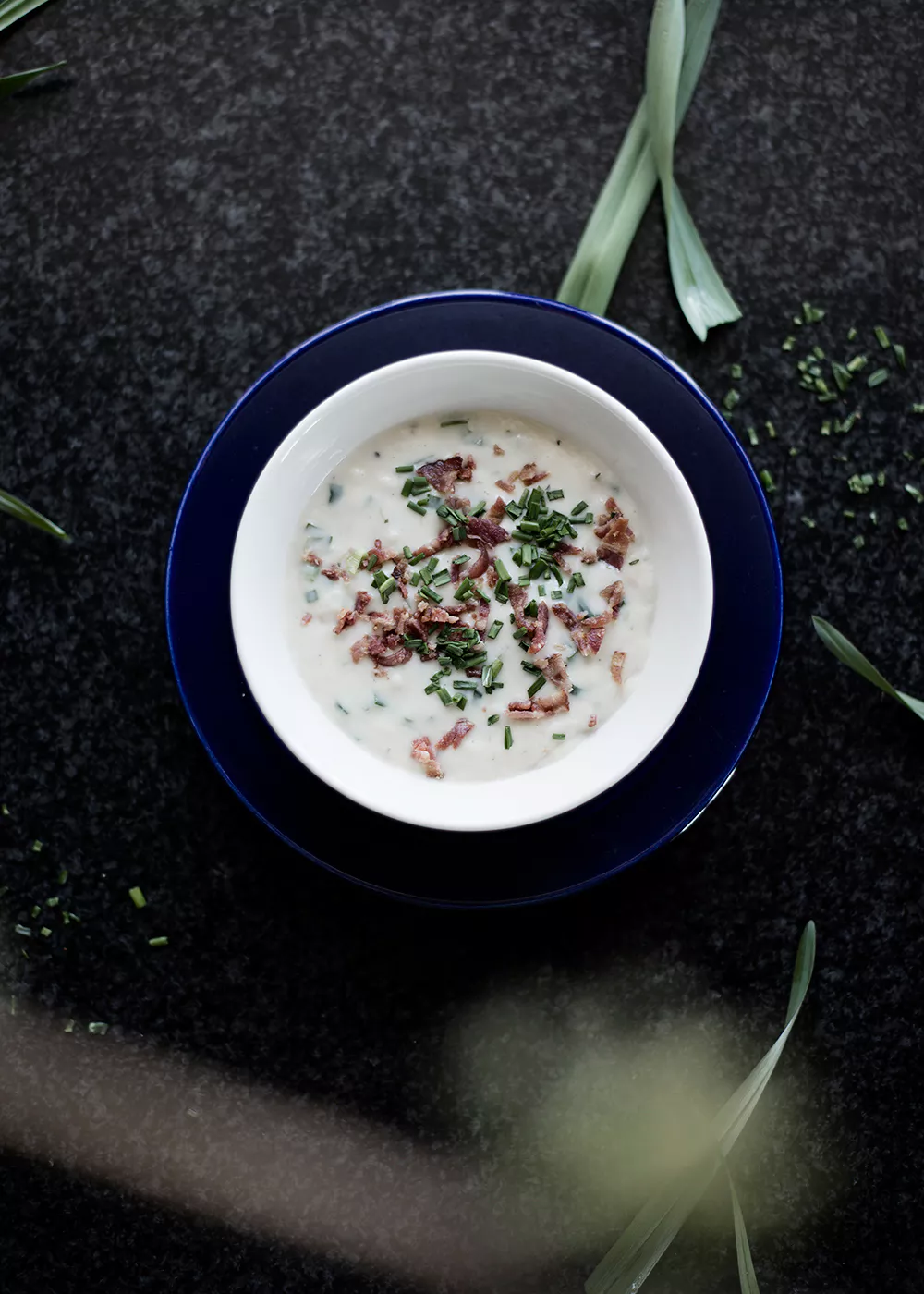 7. Servera i tallrik och strö över bacon och gräslök