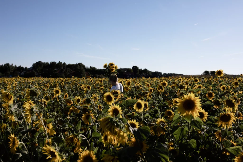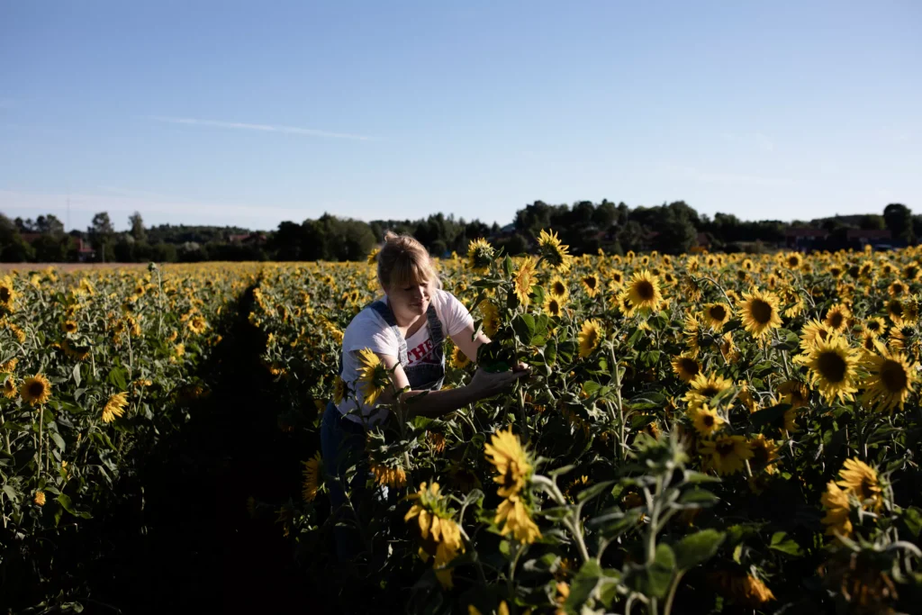 Ett litet sensommar vykort från augusti då jag var på ett självplock och plockade solrosor. Nära mina svärföräldrars lantställe finns detta fält av soliga rosor och det börjar bli tradition att åka dit både en och två gånger per säsong.