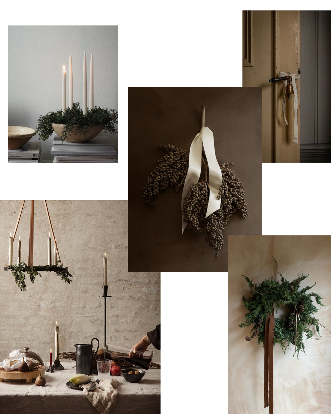 Häng gröna kvistar och rosetter på dörrhandtag och krokar för en mjukstart på julmyset.